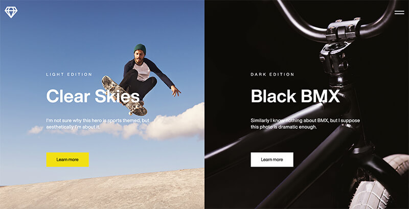 Another trend I’ve been seeing grow through the year and will surely grow in 2020 is the use of vertical split sections. This trend is used to create two separate info sections in the same space. In some cases, the vertical split is used throughout an entire site or only in some sections.